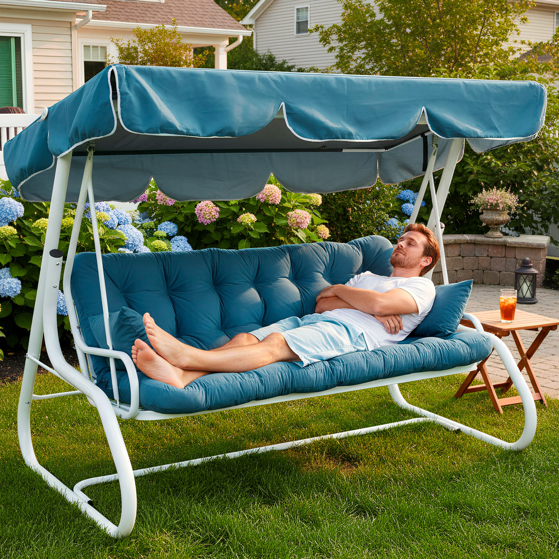 Садовая качеля Санторини. Элегантная качеля с расскладной и откидной спинкой — это одна из наших самых новых моделей.