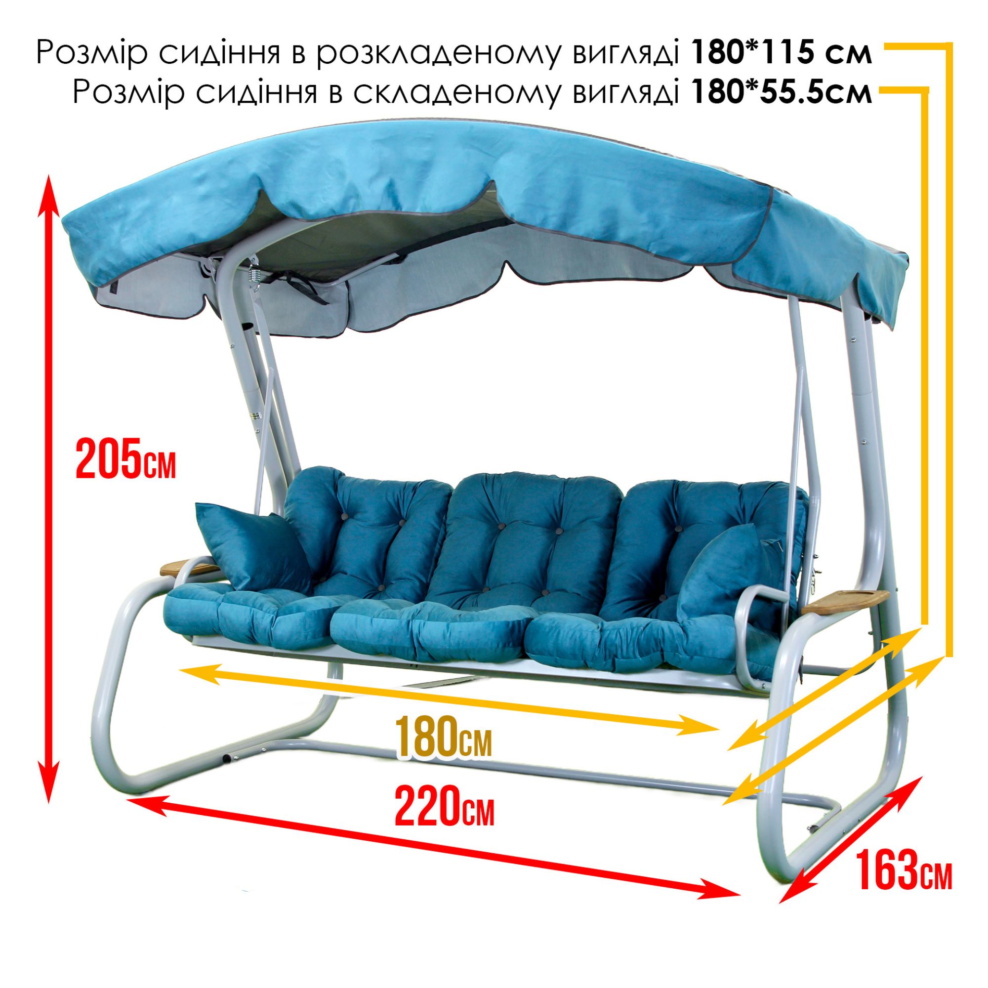 У этой садовой качели длинная 180-сантиметровая лавка, которая гарантирует комфортный отдых. Лавка раскладывается в полностью лежачее положение и фиксируется от раскачивания.
