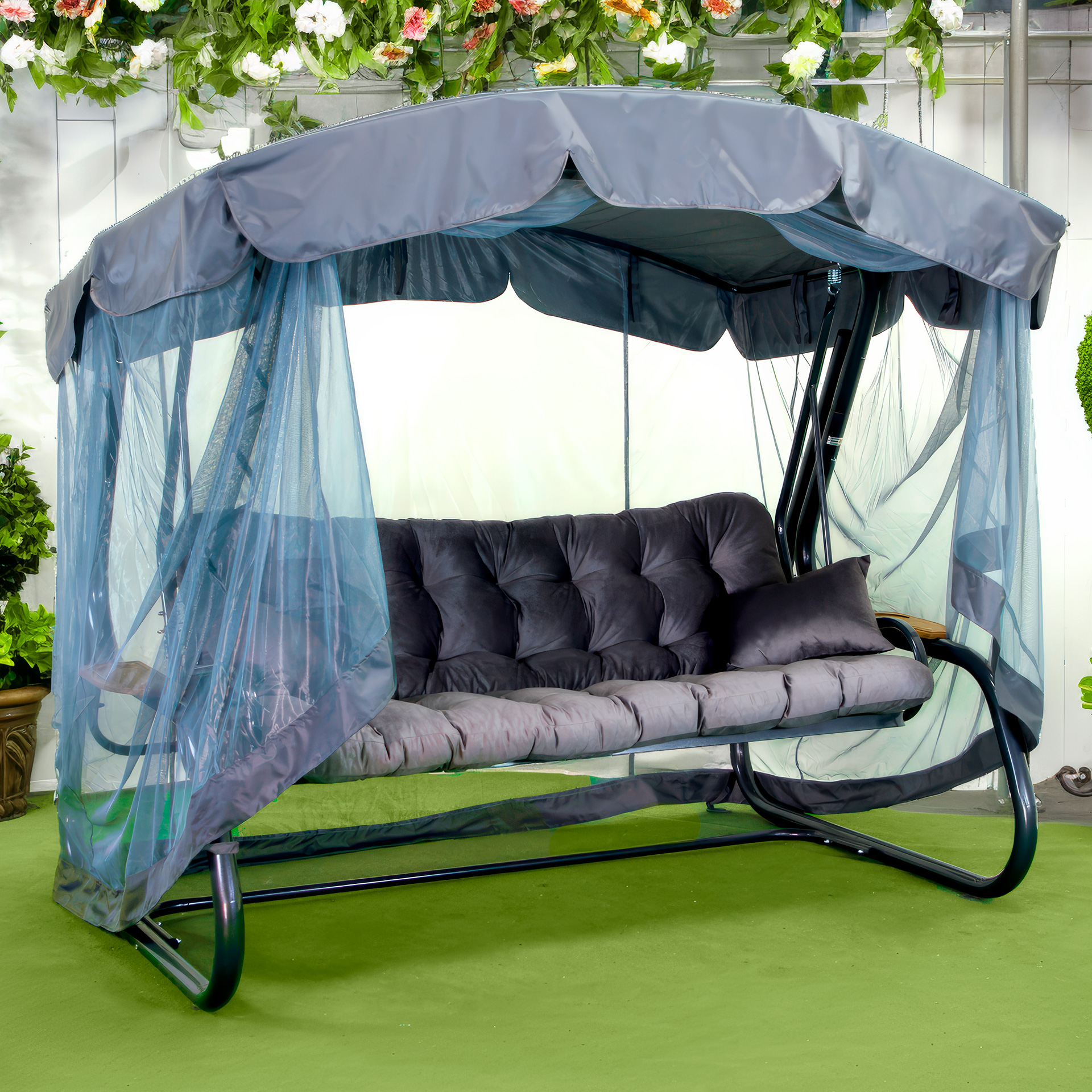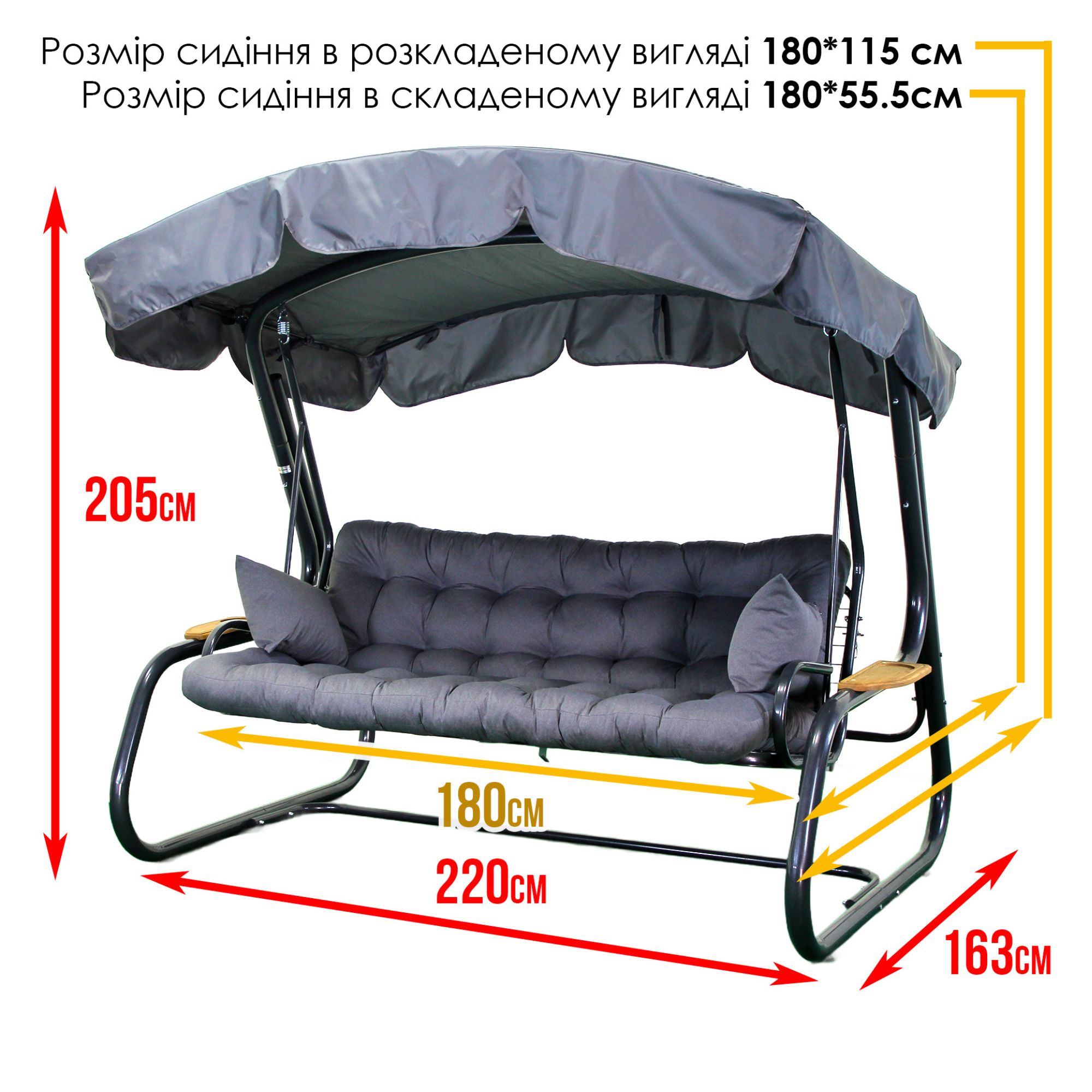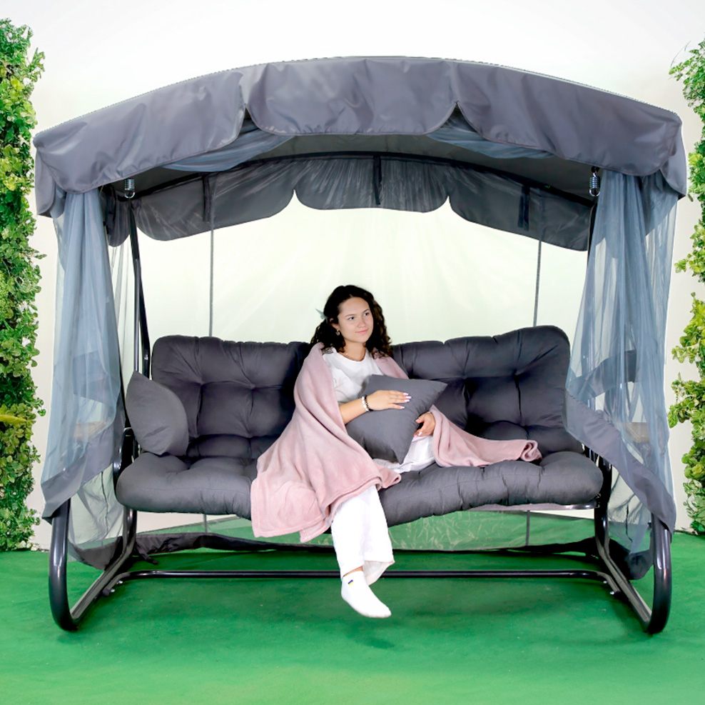 Гойдалка садова має великі габарити і розрахована на 3-4 людей загальною масою до 400 кг.