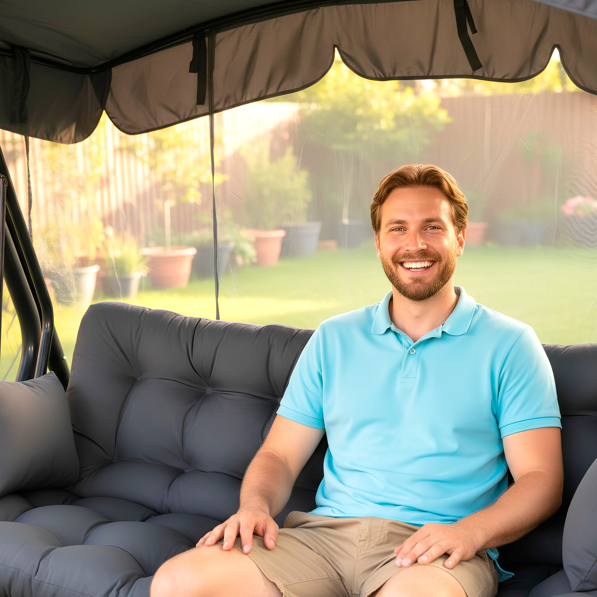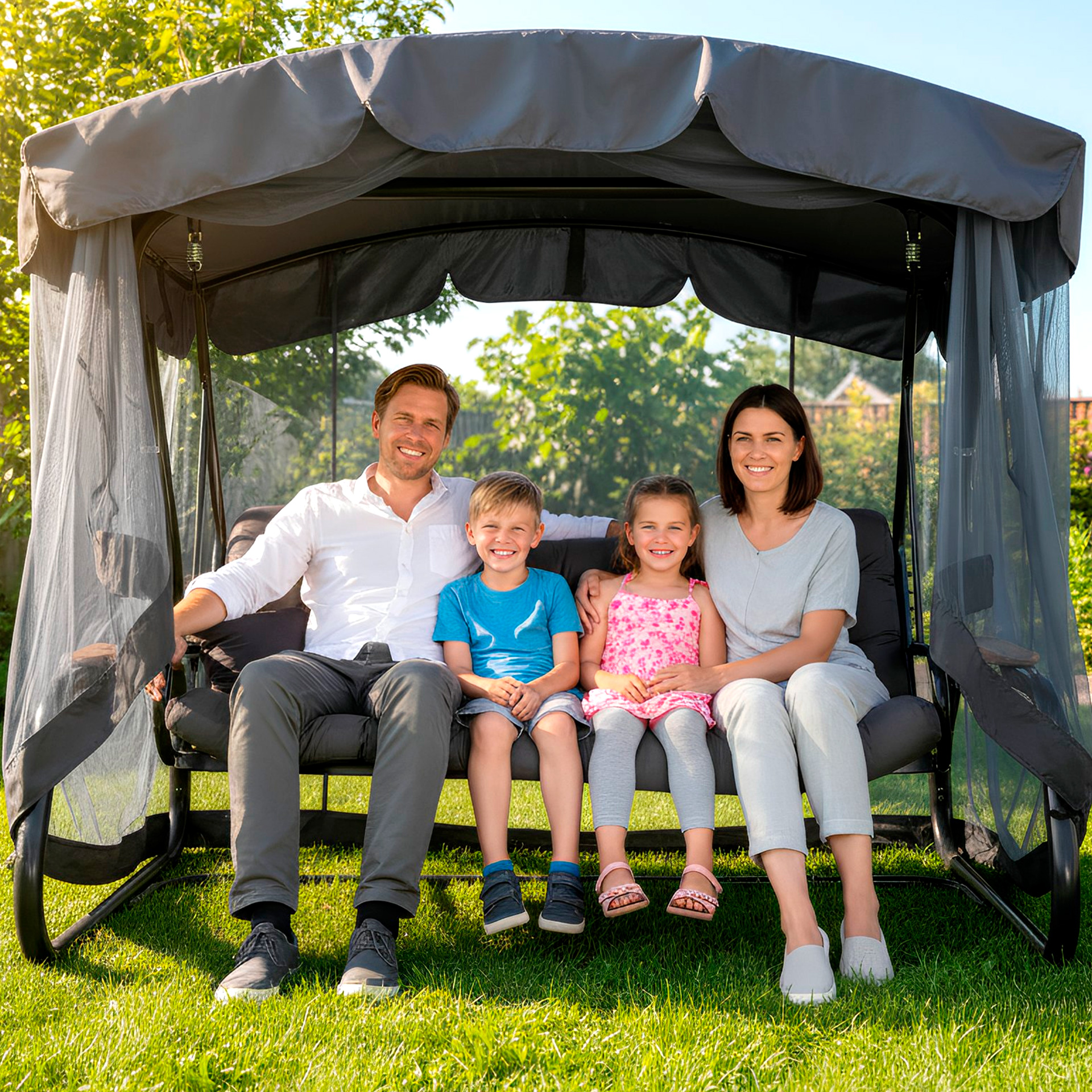 Гарантійний термін експлуатації гойдалки - 12 місяців з моменту реалізації (дати продажу). Гарантія діє на каркас, сидіння (металеву зварну сітку), пружини підвісів. Гарантія не розповсюджується на мякі частини (подушки), тент і москітну сітку.
