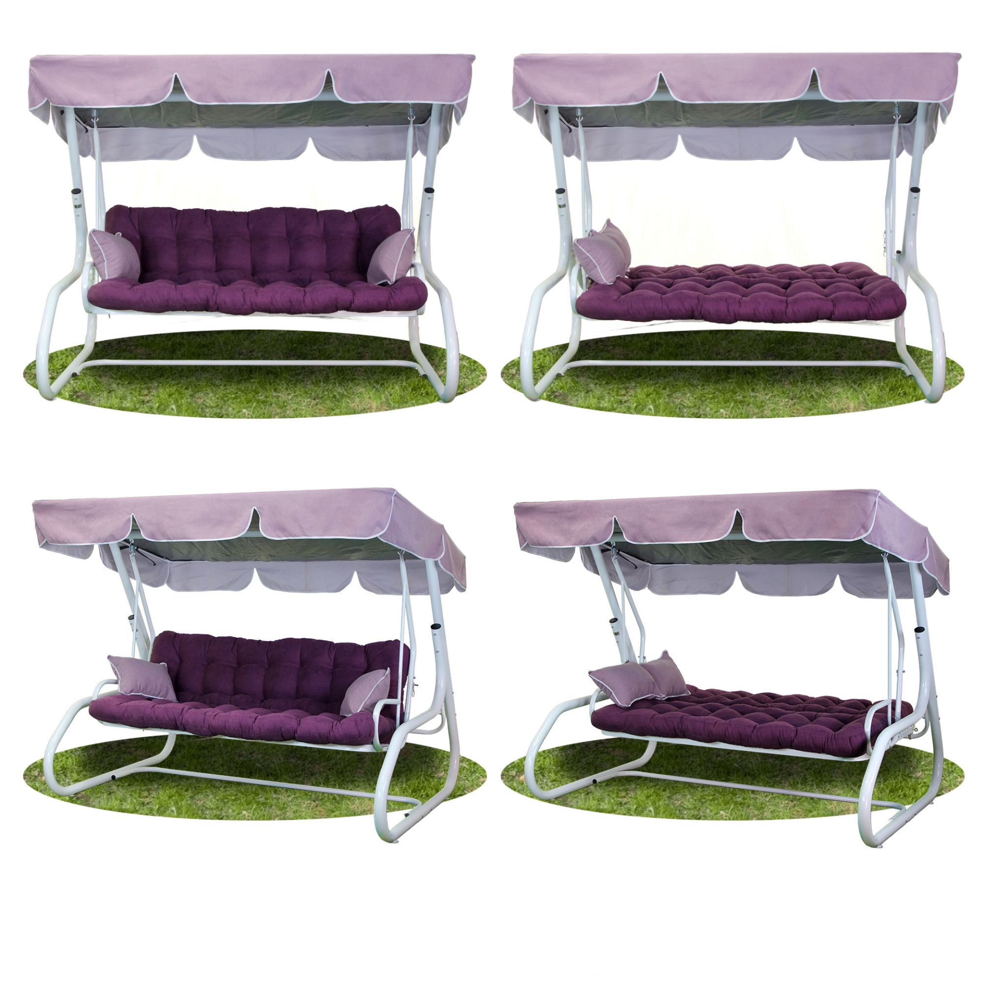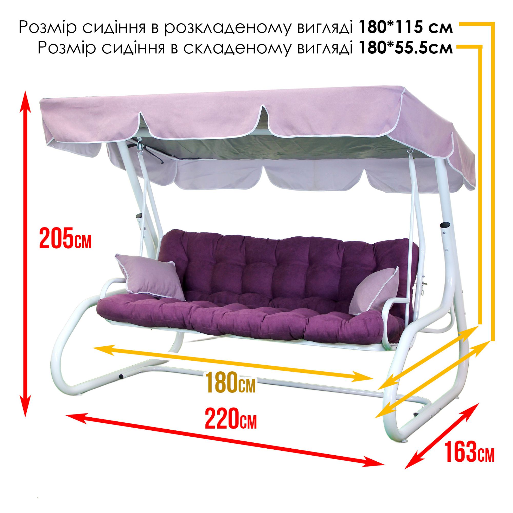 Колір каркасу білий, а тенту і матрасиків — фіолетовий.